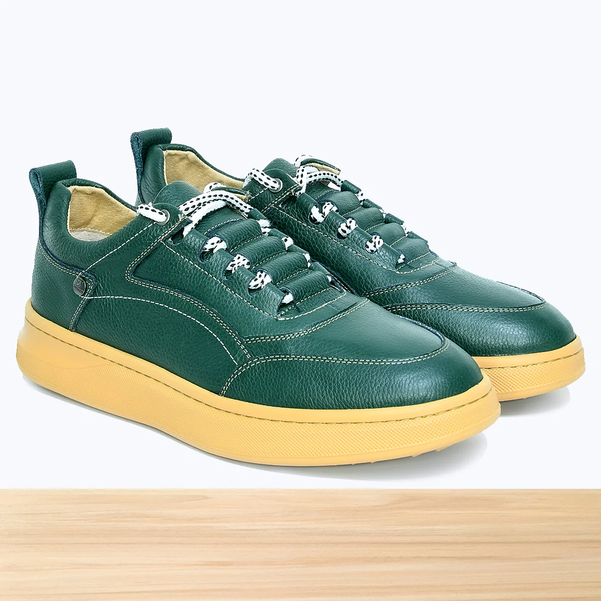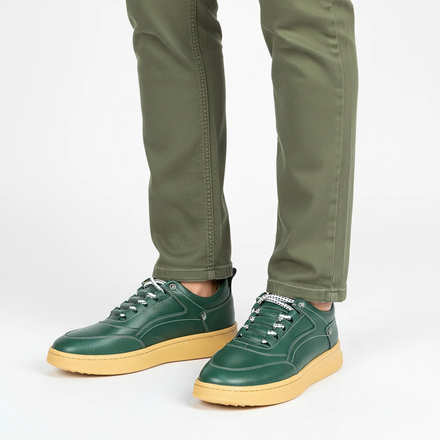 Basket homme Hoka vert, chaussure sport casual au design moderne et dynamique, avec finitions soignées pour un style décontracté urbain. Matériaux de qualité aux détails travaillés, semelle confortable, parfaite pour un look sportif chic au quotidien. Fabrication artisanale réalisée au Maroc par des professionnels qualifiés.