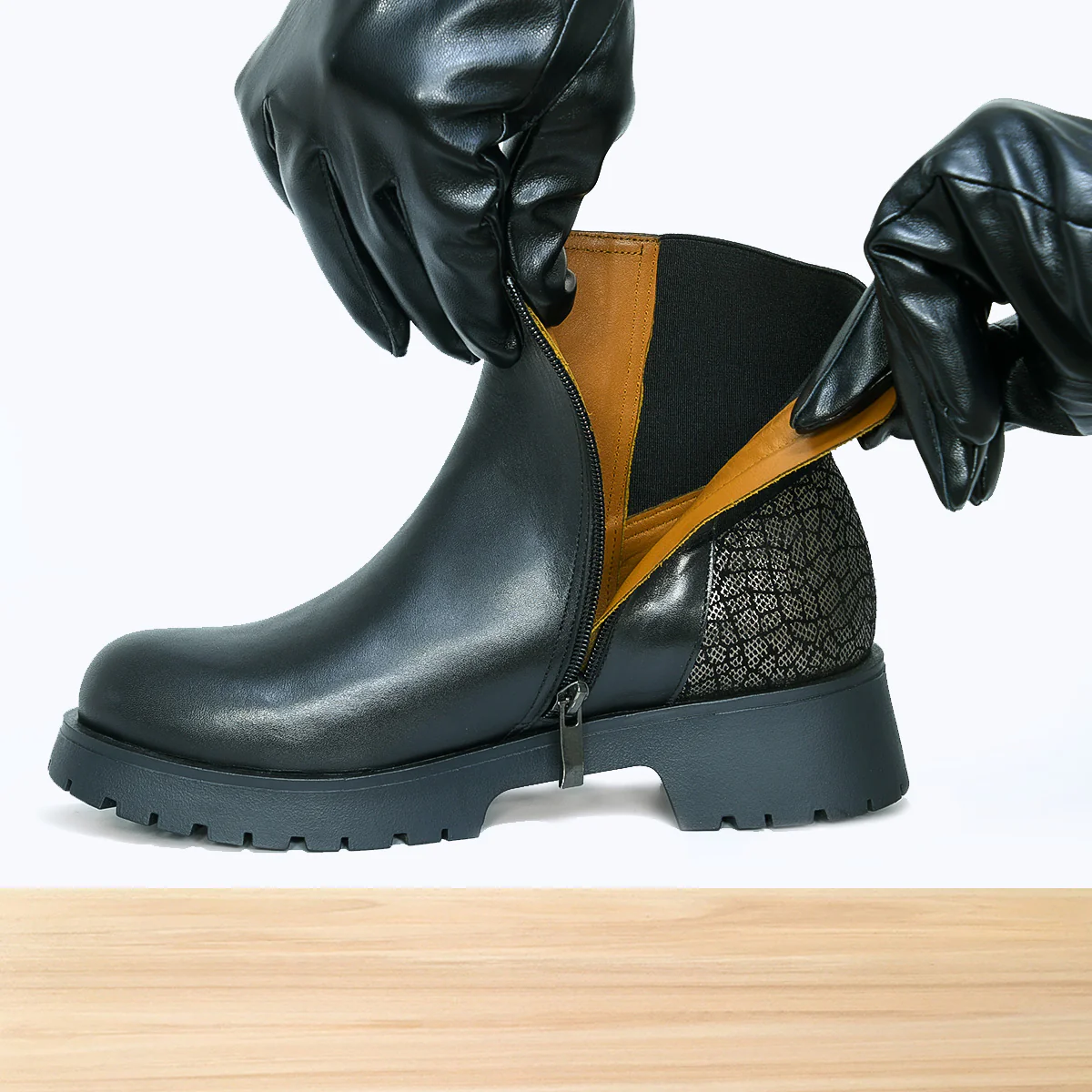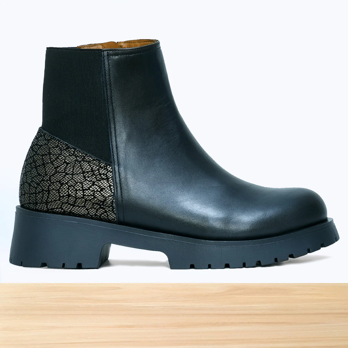 Bottine femme Giova noire, chaussure montante élégante au design moderne et raffiné, avec finitions soignées pour un style tendance. Cuir de qualité aux détails travaillés, semelle confortable, parfaite pour un look chic automne-hiver au quotidien. Fabrication artisanale réalisée au Maroc par des professionnels qualifiés.