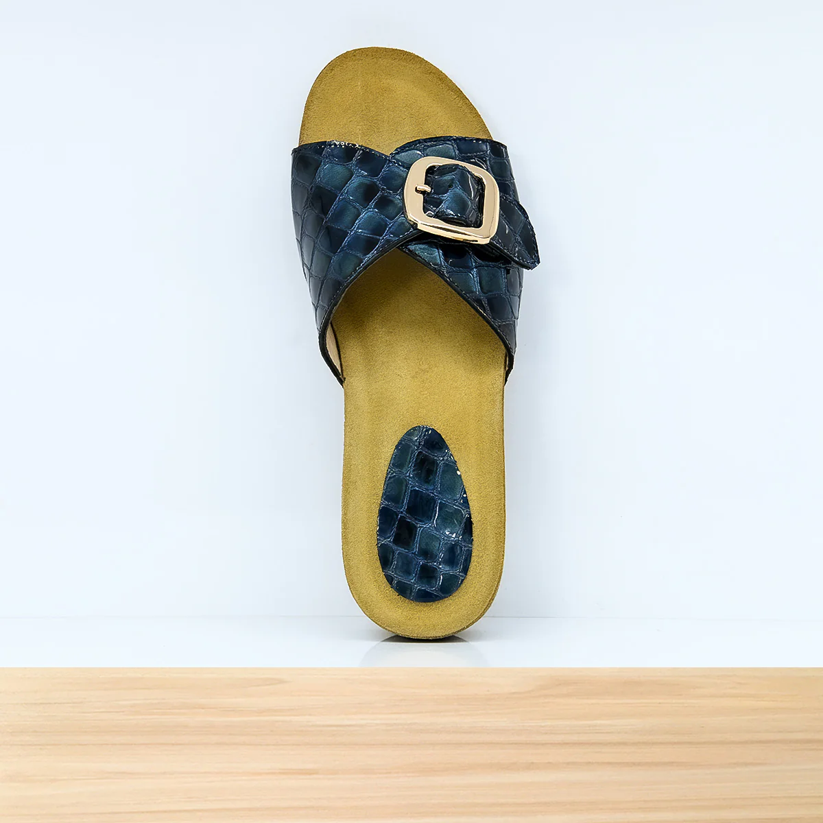 Sandales médicales femme cuir bleu Maroc – Conçues pour le confort orthopédique, avec semelle anatomique et soutien de la voûte plantaire.