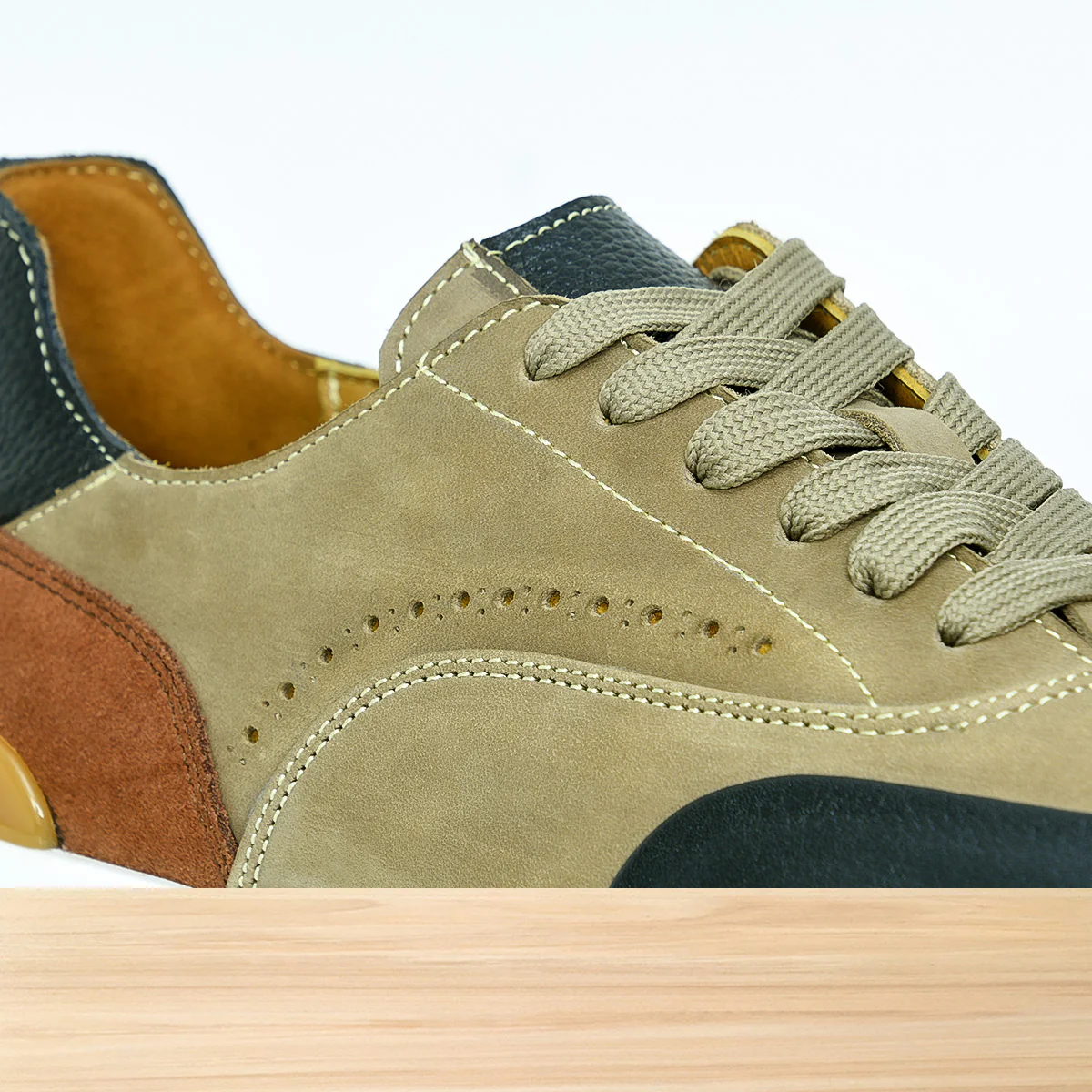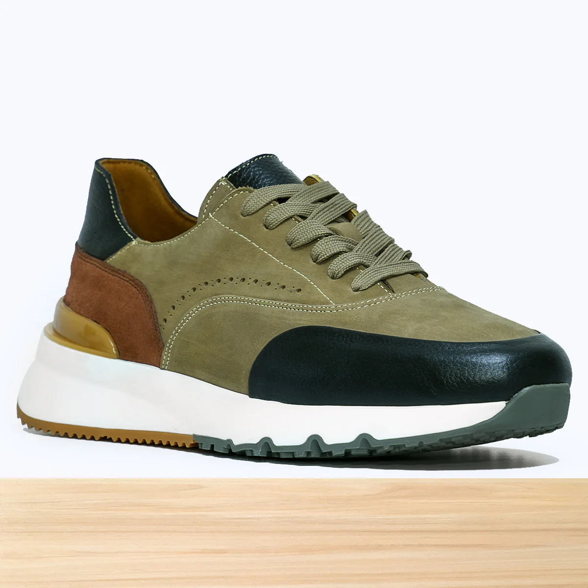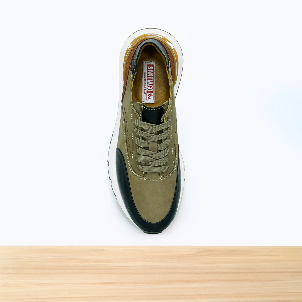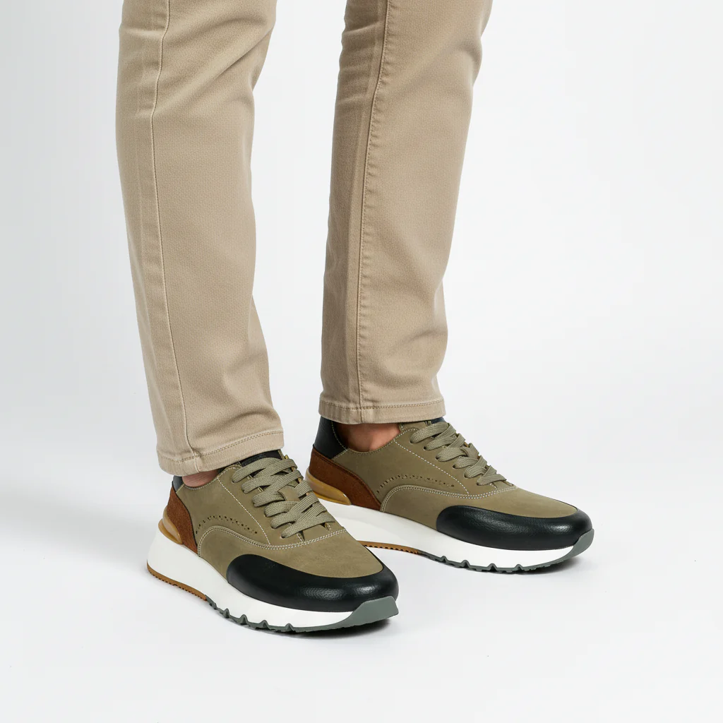 Basket homme Navio Beige Foncé, chaussure sport casual au design moderne et élégant, avec finitions soignées pour un style décontracté urbain. Cuir de qualité aux détails travaillés, semelle confortable, parfaite pour un look sportif chic au quotidien. Fabrication artisanale réalisée au Maroc par des professionnels qualifiés.