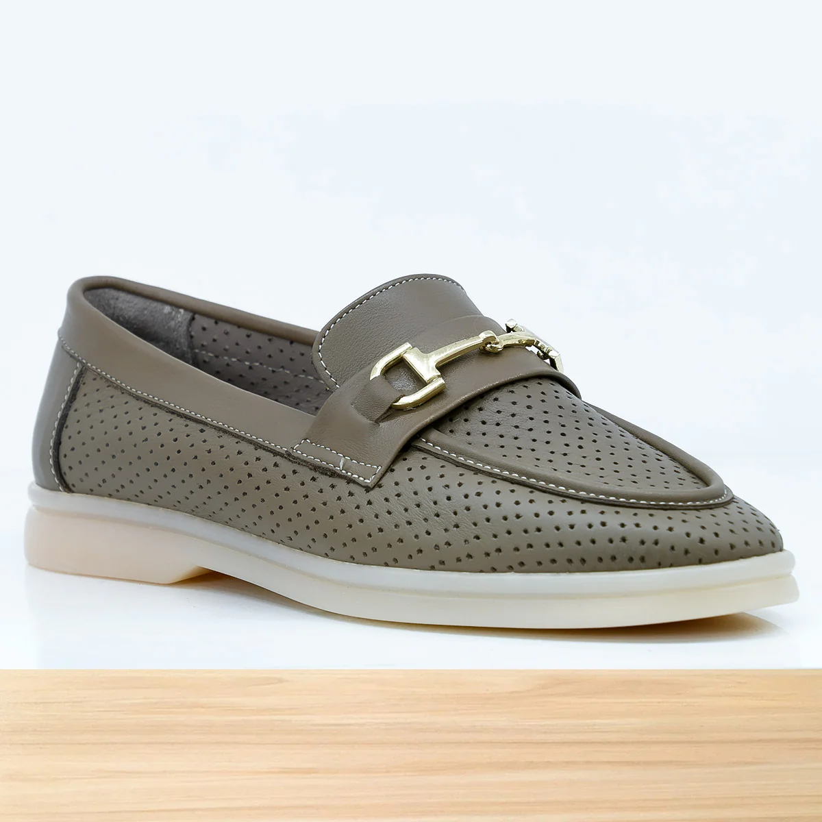 • Dessus/Tige : Cuir de haut qualité• Doublure intérieure : Cuir de haut qualité• Semelle extérieure : Gomme flexible 🇪🇸 Mocassin femme en cuir taupe – modèle ToreyChaussures femme élégantes et confortables en cuir perforé, idéales pour l’été au Maroc.Mocassin tendance 2025 avec boucle dorée, parfait pour vos tenues chic ou décontractées.