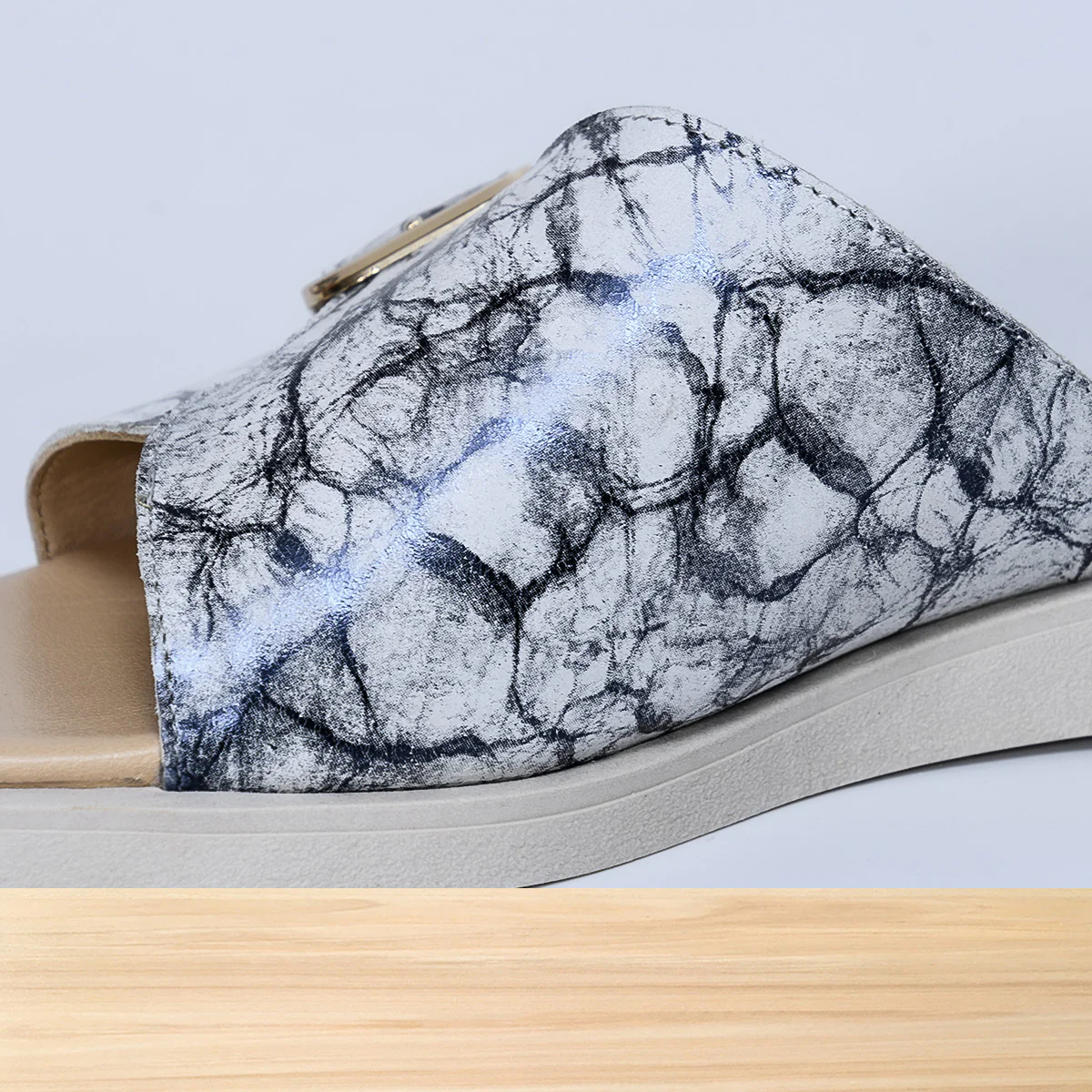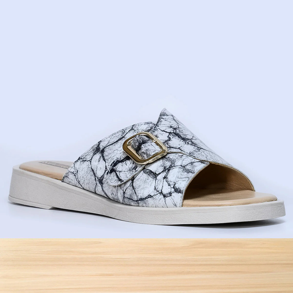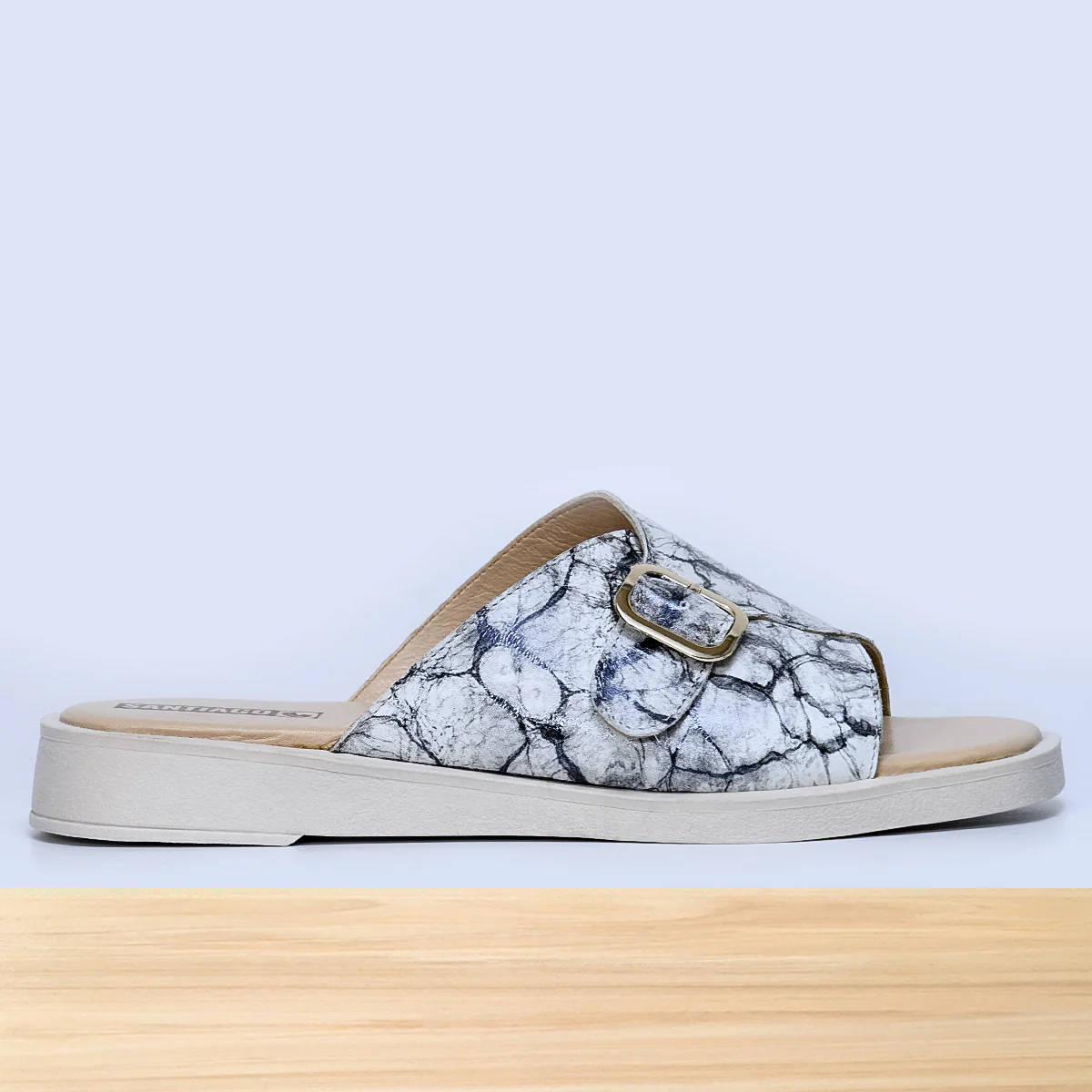 Confectionnée en cuir véritable avec une boucle ajustable, cette sandale légère allie style original et confort.