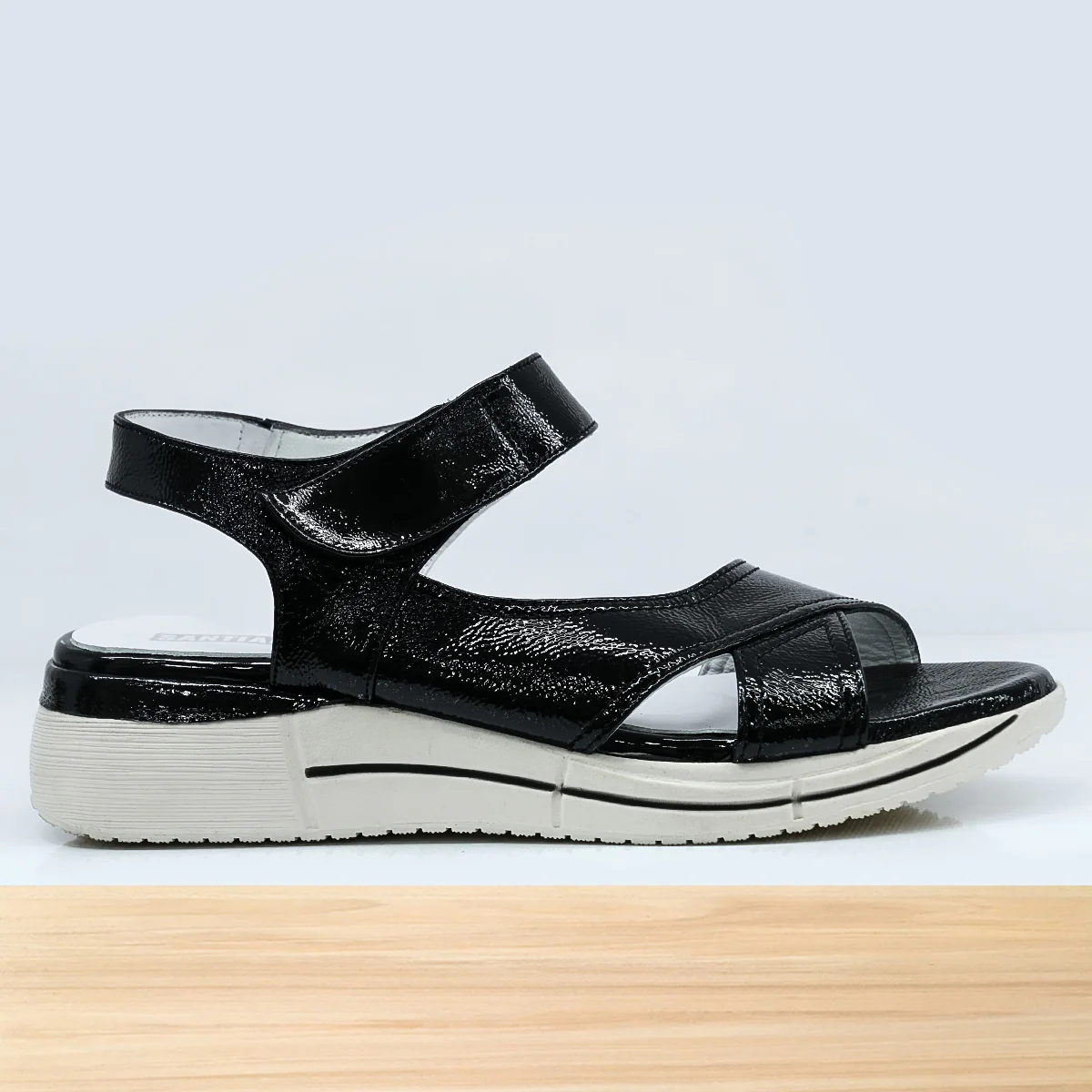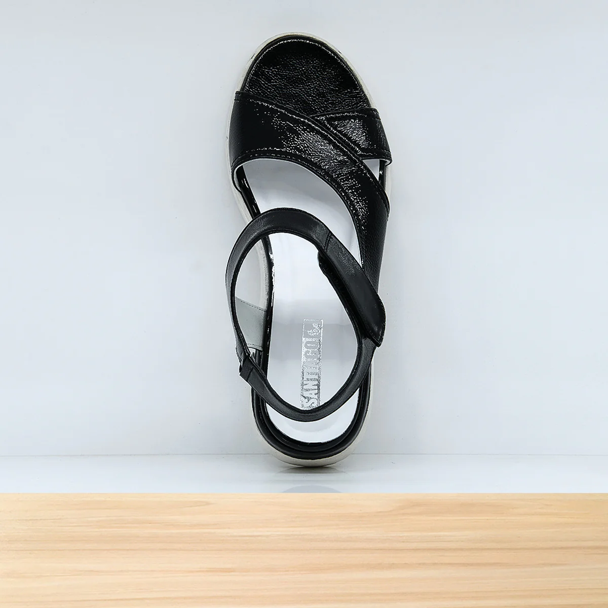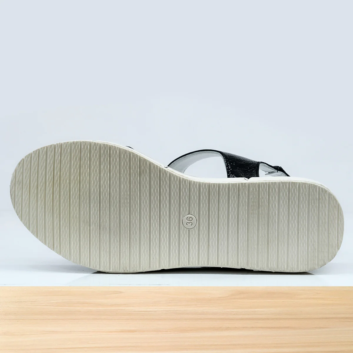 Sandale noir légère et confortable, sa forme ouverte et sa bride élastique à l’arrière assurent un bon maintien tout en laissant le pied respirer.