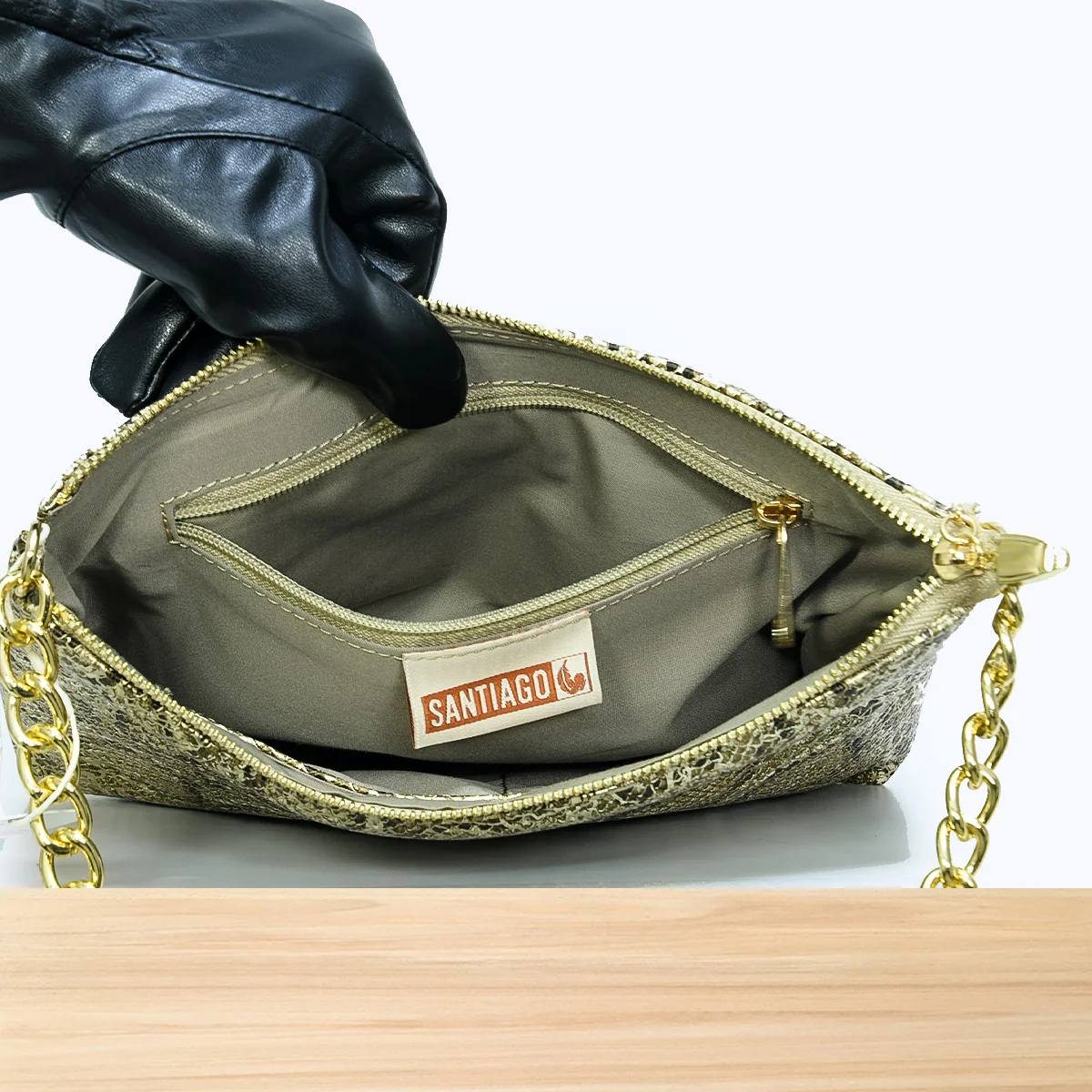 • Matériaux : Similicuir résistant de qualité supérieure• Fermeture : Zip doré robuste• Rangements :✨ 1 grande poche principale zippée✨ 1 poche intérieure zippée✨ 2 petites poches ouvertes pour téléphone ou accessoires• Dimensions : Base: 25cm | Hauteur: 16,5cmModèle unique, disponible exclusivement chez SANTIAGO✨ Parfait pour vos sorties de jour comme de nuit, le sac […]