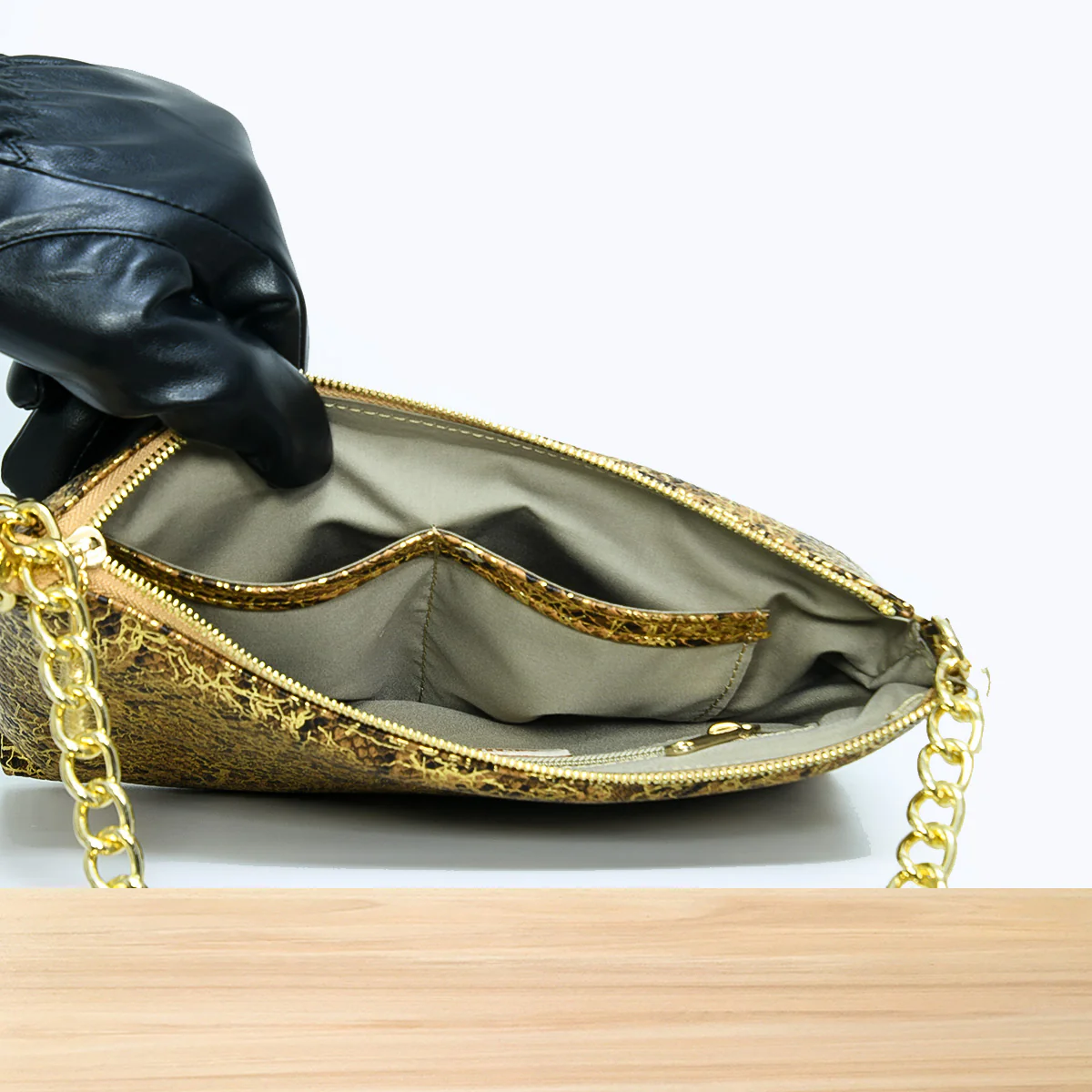 • Fermeture : Zip doré robuste